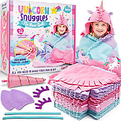 Unicorn Snuggles No Sew Quilt Kit, DIY Tie Blanket with 32 Colorful Quilt Pieces