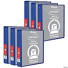 BAZIC Products 3-Ring View Binder with 2 Pockets, 1", Blue, Pack of 6