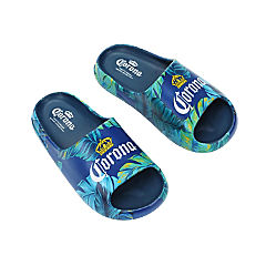 Corona Palm Leaf Logos Men's Blue Single Molded Slide Sandals-Small