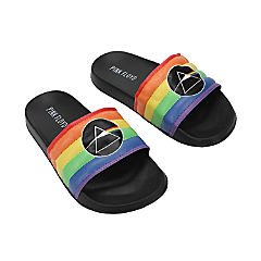 Pink Floyd Dark Side Of The Moon Triangle Artwork On Rainbow Straps Women's Black Slide Sandals-Medium