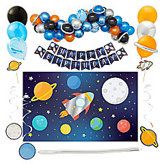 102 Piece Outer Space Kids Birthday Party Decorations Kits with Backdrop, Banner, Backdrop, Balloons, Swirls, Cupcake Toppers