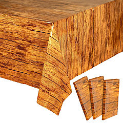 3 Pack Wood Grain Tablecloths, Disposable Rustic Tablecloth for Birthday Party, 54 x 108 In