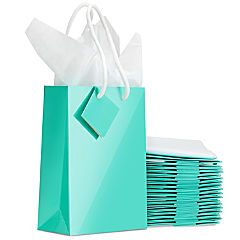 20-Pack Small Teal Gift Bags with Handles, Tag, and Tissue Paper Sheets for Baby Shower Party Favors, 7.9x5.5x2.5 in