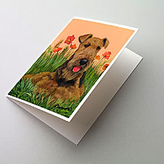 Caroline's Treasures Airedale Terrier Poppies Greeting Cards and Envelopes Pack of 8, 7 x 5, Dogs
