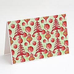 Caroline's Treasures Christmas, Red Christmas Tree and Ornaments Greeting Cards and Envelopes Pack of 8, 7 x 5,