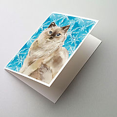 Caroline's Treasures Ragdoll Winter Snowflakes Greeting Cards and Envelopes Pack of 8, 7 x 5, Cats
