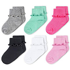 Baby Girls Socks, Ruffle Ripple Edge Turn Cuff Sock - 9-24 Months Toddler - 6 pack, Solid Multicolored
