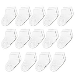 Non-Slip Crew Grip Infant Socks, 12 Pack for Boys & Girls, White, 5-7 Years old