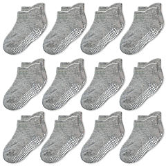 Non-Slip Ankle Style Socks with Grippers, 12 Pack for Baby Boys and Girls, Solid Gray, 6-12 Months, Unisex