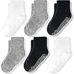 Non-Slip Crew Grip Toddler Socks, 6 Pack for Boys, Black/White/Gray, 1-3 Years Old, Unisex