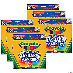 Crayola Ultra-Clean Washable Bold, Broad Line, Color MaProper Markers, 10 Per Pack, 6 Packs