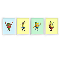 Fruit Fiesta Set of 4 White Framed Canvas by Dancing Littles Jungle - Size 16x24 Inch