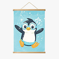 Pippin the Plunging Penguin Wood Frame Hanger by Dancing Littles Jungle