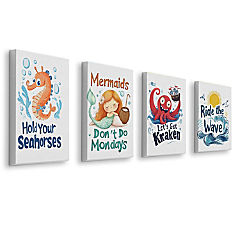 Aquatic Attitude Set of 4 Gallery Wrapped Canvas by Dancing Littles Jungle - Size 8x10 Inch