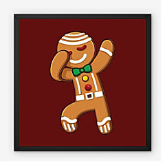 Greg the Gingerbread Black Framed Canvas by Dancing Littles Jungle - Size 16x24 Inch