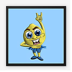 Lenny the Lemon Black Framed Canvas by Dancing Littles Jungle - Size 16x24 Inch