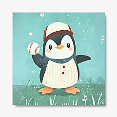 Pete the Pitching Penguin Gallery Wrapped Canvas by Dancing Littles Jungle - Size 18x24 Inch