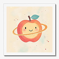 Planet Apple White Framed Canvas by Dancing Littles Jungle - Size 16x24 Inch