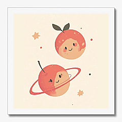 Planet Cherries White Framed Canvas by Dancing Littles Jungle - Size 16x24 Inch