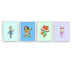 Woodland Wonders Set of 4 White Framed Canvas by Dancing Littles Jungle - Size 16x24 Inch