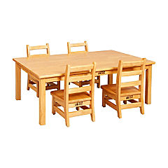 ECR4Kids 30in x 48in Rectangular Hardwood Table with 16in Legs and Four 8in Chairs, Kids Furniture, Honey