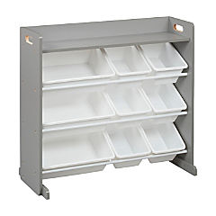 ECR4Kids 3-Tier Organizer with Shelf and 9 Bins, Toy Storage, Grey/White
