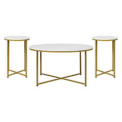 Emma + Oliver White Finish Table Set with Brushed Gold X Metal Frame-Coffee Table-2 End Tables