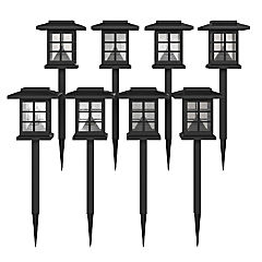 Emma + Oliver Solar Powered LED Lights - Weatherproof Black Polypropylene Lantern Style Frame - Set of 8 - Simple Assembly - Eco Friendly