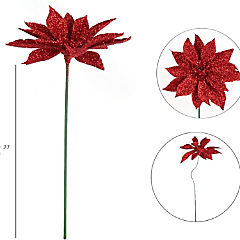 8.5" Red Glitter Poinsettia Flower, Christmas Holiday Decoration, Ideal for Holiday Decor