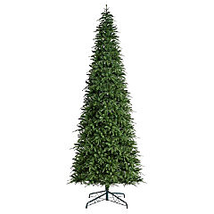 Glitzhome 11ft Pre-Lit Green Slim Fir Artificial Christmas Tree with 850 Warm White/Multi-color LED Lights, 9 Function, w/Remote Control, Simple Setup