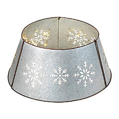 Glitzhome 21.65"D Snowflake Diecut Metal Tree Collar with Light String(KD)