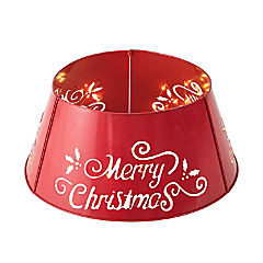 Glitzhome 26"D "Merry Christmas" Diecut Metal Tree Collar with Light String(KD)