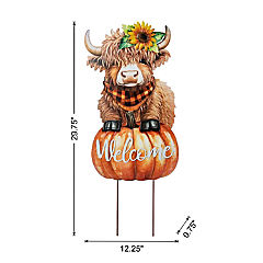 Glitzhome 29.75"H Fall Metal Highland Cow Yard Stake or Wall Décor or (KD, Two Function)