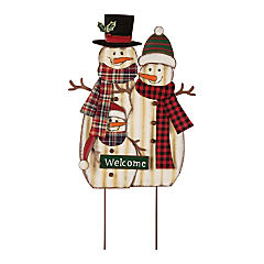 Glitzhome 30"H Metal Christmas Snowman Family Yard Stake or Standing Décor or Hanging Décor (KD, Three Function)