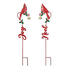 Glitzhome 36"H Set of 2 Christmas Metal Cardinal "JOY" and "NOEL" with Bell Yard Stake or Wall Décor(KD,Two Function)