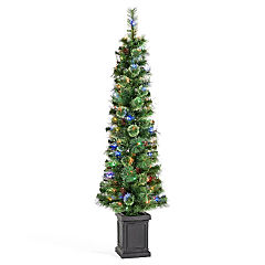 Glitzhome 5ft Pre-Lit Green Cashmere Pine Christmas Porch Tree With pinecones,90 Warm White/Multi-color Lights,9 Function w/Remote control