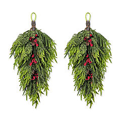 (954 items)Glitzhome Set of 2 31.5"H Christmas Greenery PE Dripping Teardrop with Pinecones and Red Berries