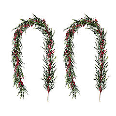 Glitzhome Set of 2 9ft Christmas Greenery PE Dripping Eucalyptus Garland with Red Berries