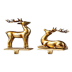 Glitzhome Set of 2 Gold Resin Standing & Sitting Reindeer Stocking Holders