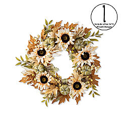 Glitzhome Set of 3 24"D Fall Neutral  Sunflower, Pumpkin and Leaf Wreaths