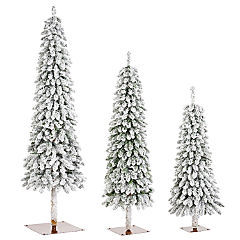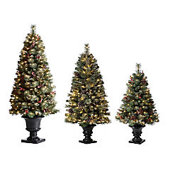 Glitzhome Set of 3 4ft/5ft/6ft Pre-Lit Flocked Pine Artificial Christmas Porch Tree with 130 Warm White Lights