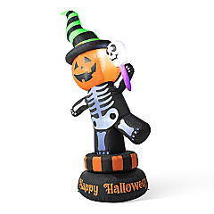 Glitzhome Set of 3 6FT Lighted Halloween Jack-O-Lantern Skeleton Rotating Inflatable Decor
