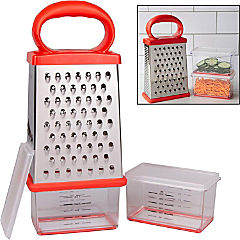 Box Cheese Grater w 2 Attachable Storage Containers- 4-Sided Stainless Steel Slicer and Shredder- 2 Hoppers for Cheeses, Vegetables, Chocolate - Soft Grip Handl