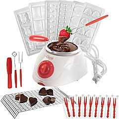 Electric Chocolate Melting Pot Gift Set- Candy Making/Fondue Fountain Kit w 30+ Accessories-7 Mold Trays & Dipping Forks