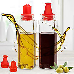 Olive Oil and Balsamic Vinegar Dispenser Bottle Set - 16 Oz Glass Cruet w Removable, Interchangeable No-Drip Spout and Silicone Basting Brush - Perfect Size for