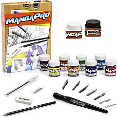 Premium Art Drawing Set - 24 pc Manga Animae Animation Sketch and Comic Cartoon Tools Kit w Ink, Watercolors, Knives, Pen, Nibs, Eraser, and Pencils - For Begin