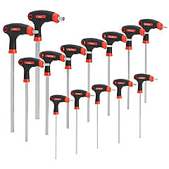 14 Piece T Handle Allen Wrench Set, 7 SAE and 7 Metric Hex Key Set, Red and Black