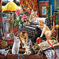 Sunsout Kittens in the Writer's Office 1000 pc Large Pieces Jigsaw Puzzle