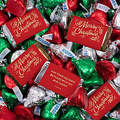 496 Pcs Holiday Party Chocolate Candy Mix Assorted Miniatures & Red, Green And Silver Kisses - Merry Christmas (6.11lb)