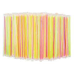 600 Pack Individually Wrapped Plastic Drinking Straws (0.23 x 0.23 x 10.2 In, Assorted Neon Color)